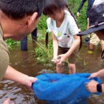 本来は川の中に網を敷き、魚を放流してつかみ取りをする予定でしたが雨のためつかみ取りの過程のみを体験する形で実施することになりました。