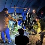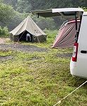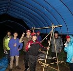 到着後の設営は雨の中。なんとか予定通り完了しました。