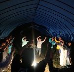 夜は大営火!ですが雨天のためテント下で。でも元気に盛り上がりました。