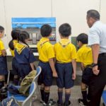 - 実物の非常停止ボタンと模型電車を使った停止ボタンの体験(踏切用と駅ホーム用)